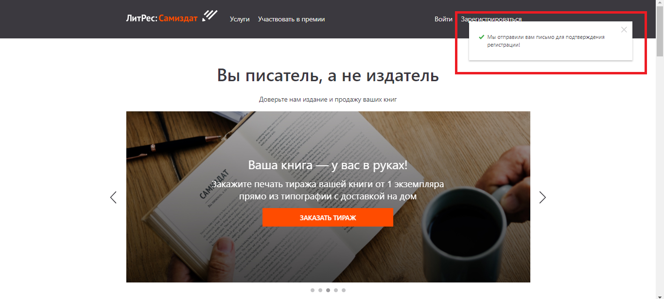 Письмо с подтверждением регистрации отправлено вам на почту.