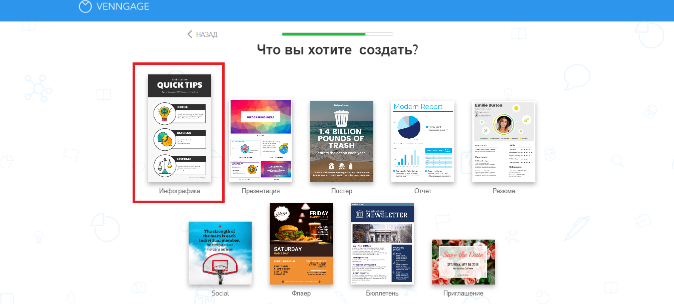 Выбираем, что именно хотим создать. В данном случае нас интересует только инфографика.