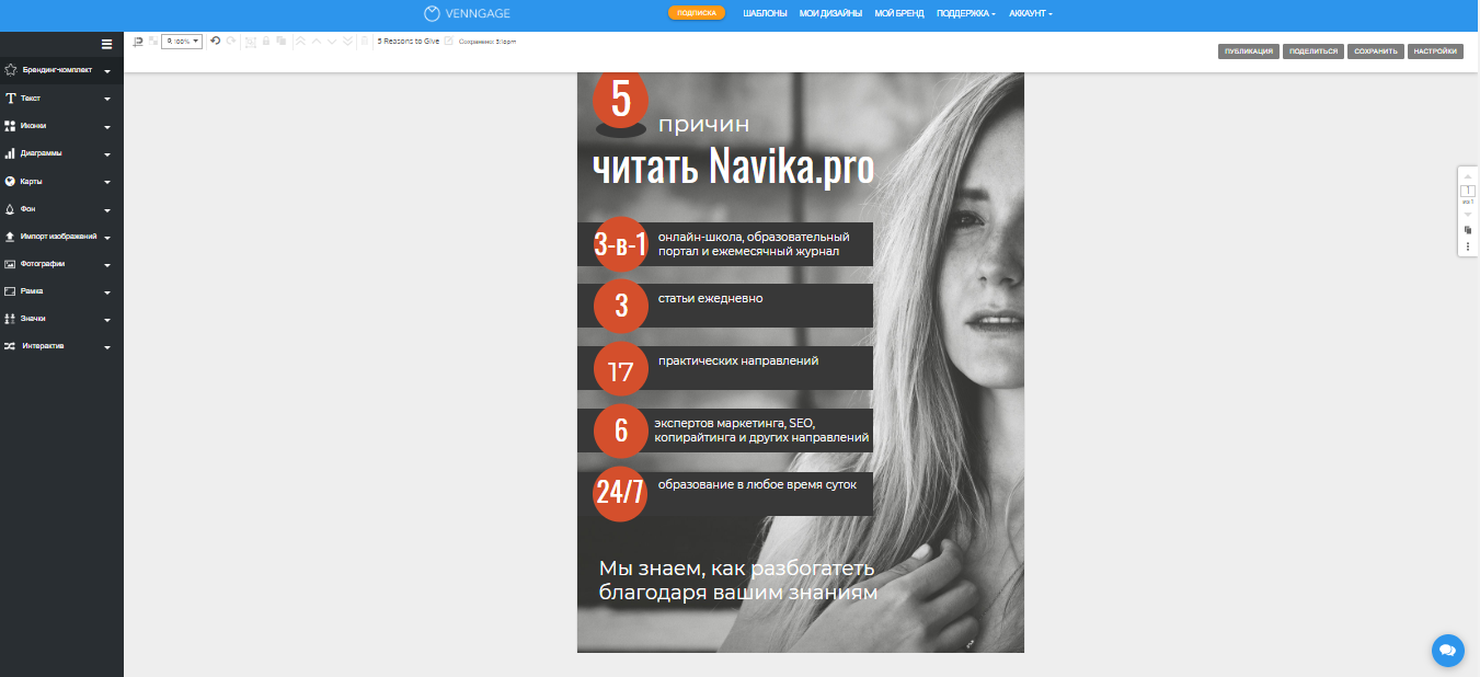 Вуаля, инфографика готова! Загружайте ее на свой сайт или в соцсети.