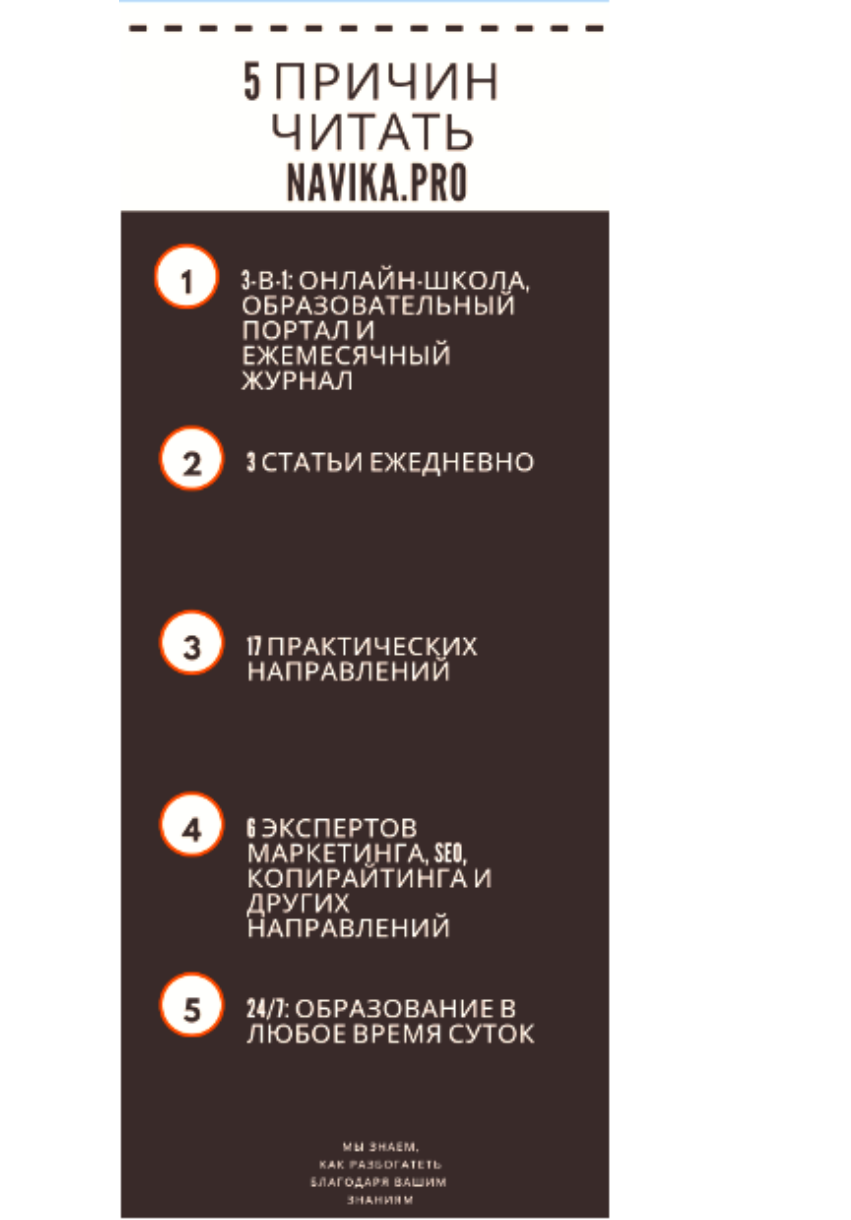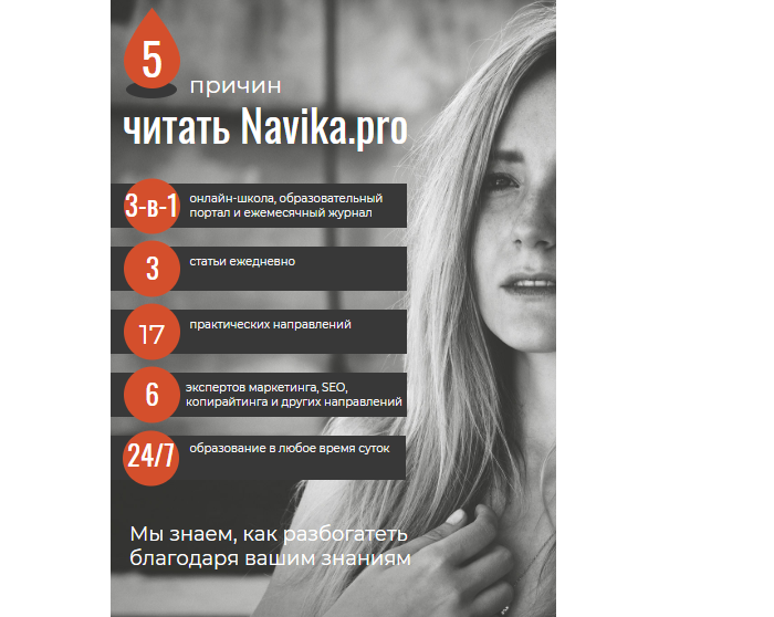 Инфографика — это графическое изображение информации. Чаще используется для отображения статистических данных. Столбики, схемы, диаграммы, картинки, таблицы, символы, списки — все это структурирует информацию, нагляднее демонстрирует сухие цифры и помогает человеку быстрее сориентироваться в материале. Кроме того, с помощью инфографики можно проиллюстрировать практически любой процесс, например, создание каких-то предметов. Это оживит текст и сделает его запоминающимся или вообще заменит собой весь текст. Инфографику стоит использовать интернет-предпринимателям, коучам, фрилансерам, инфобизнесменам, владельцам сайтов, копирайтерам и всем, в чьей деятельности много цифр и данных, сложных для восприятия в виде текста. Такая подача материала увлекает читателей, помогает быстрее усвоить и понять информацию. Помните: картинки рулят!