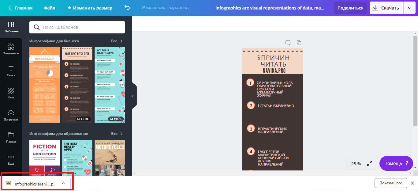 Инфографика загрузится на ваш компьютер, после чего ее можно будет открыть.