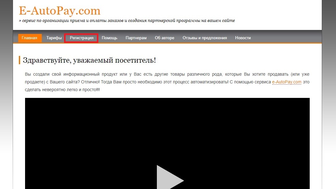 Шаг 1. Заходим на сайт www.e-autopay.com и выбираем вкладку «Регистрация».