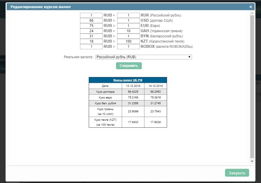 Шаг 12. После выбора валюты необходимо отредактировать актуальный курс валют. Вы можете использовать официальные курсы или задать свои соотношения. После редактирования нажимаем на кнопку «Сохранить».