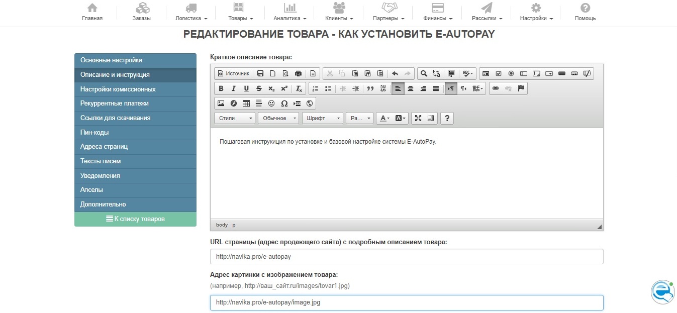 Это основные настройки для работы в системе E-AutoPay. Осталось только добавить полный список товаров и позволить вашему бизнесу работать автоматизированно, пока вы решаете другие важные задачи.