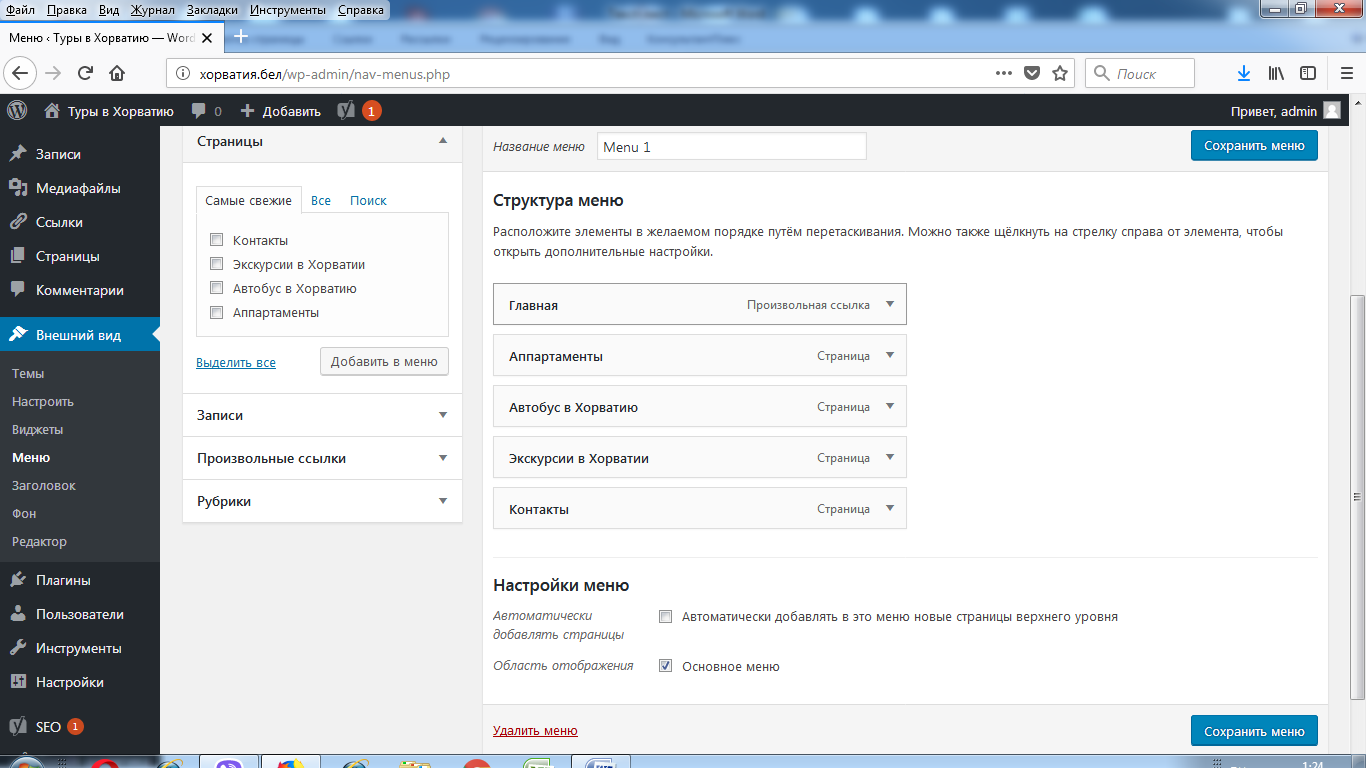 - Отредактировать меню.
