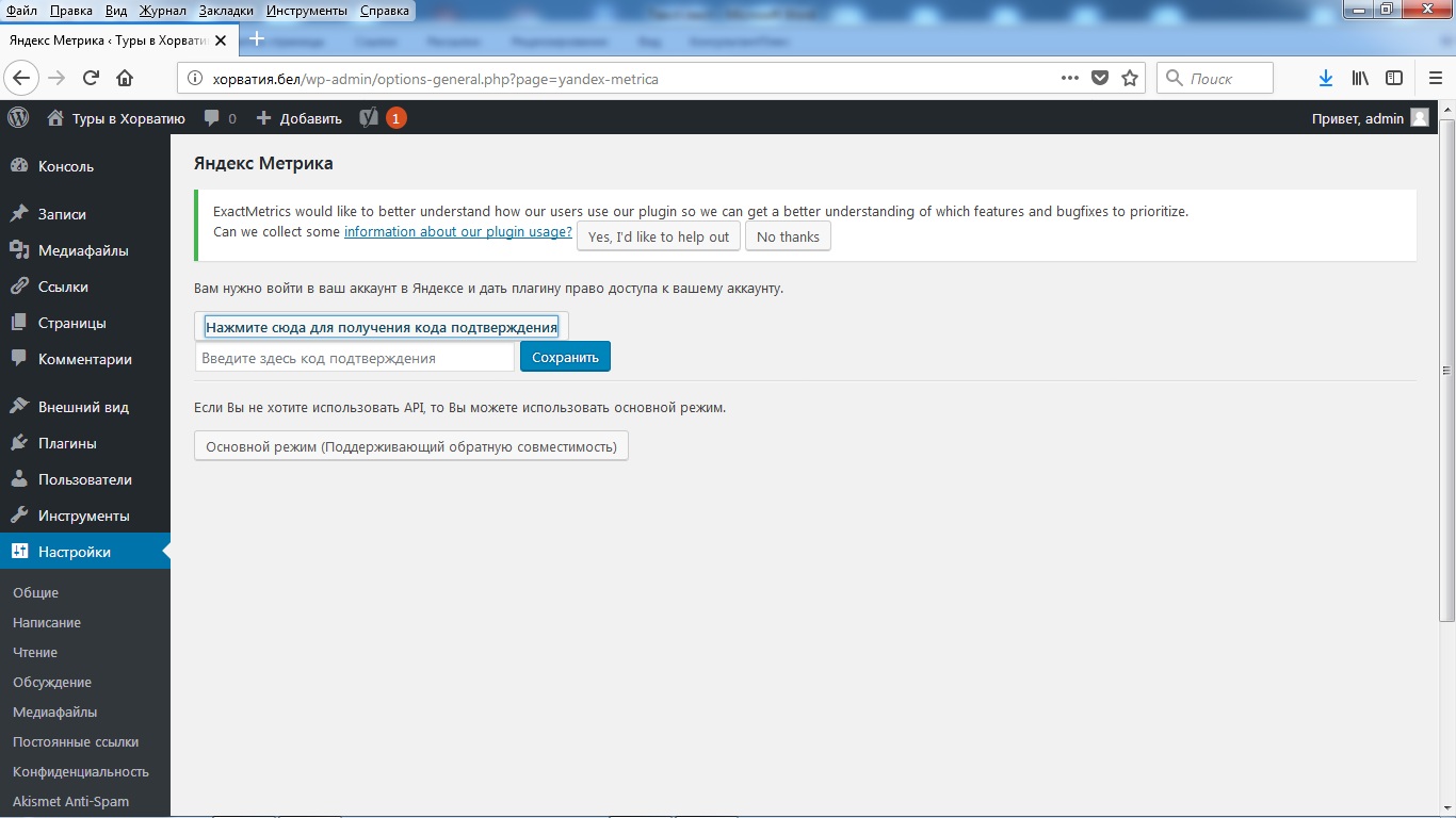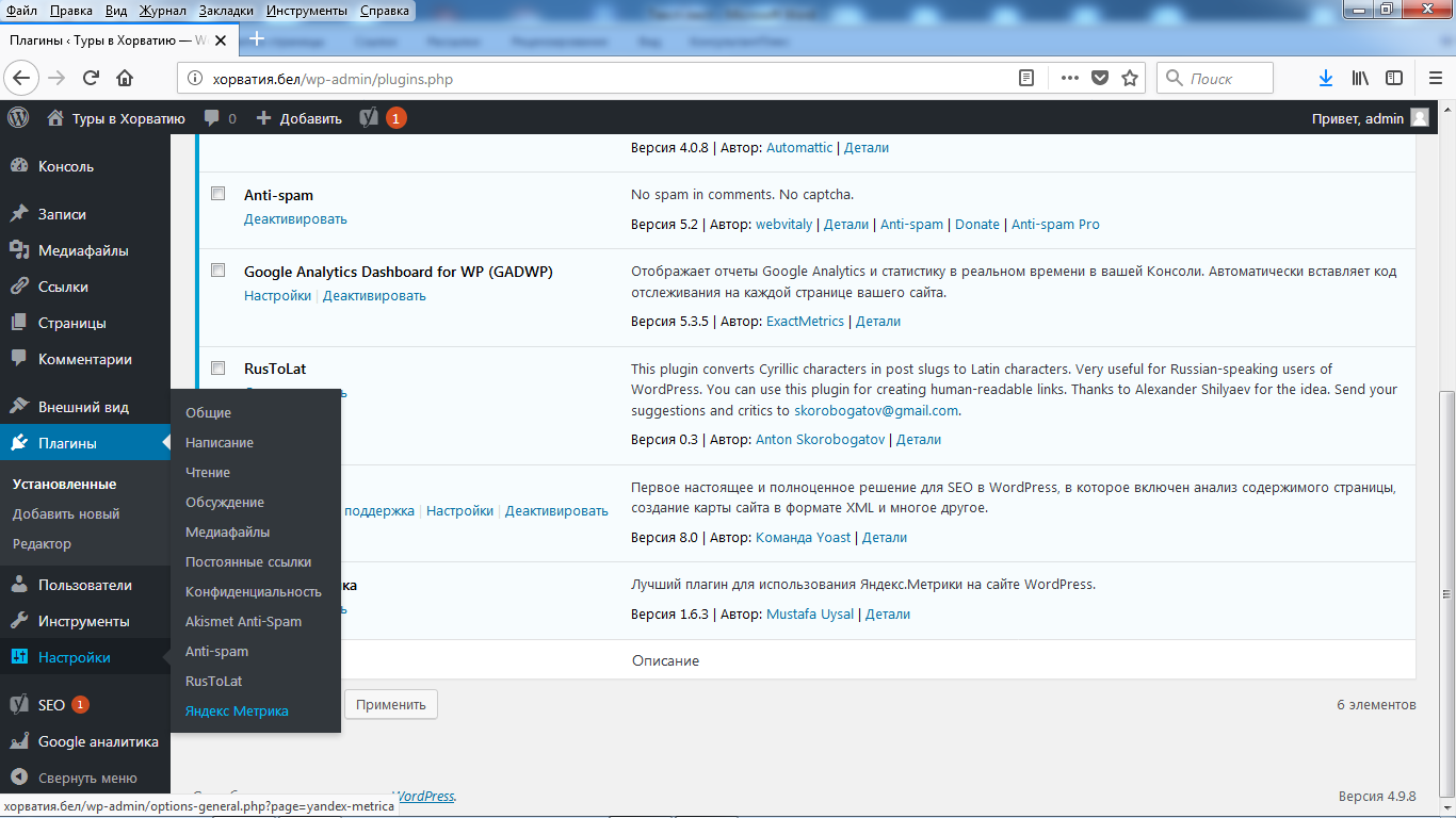 Проверьте, что плагин «Яндекс.Метрика» активирован.