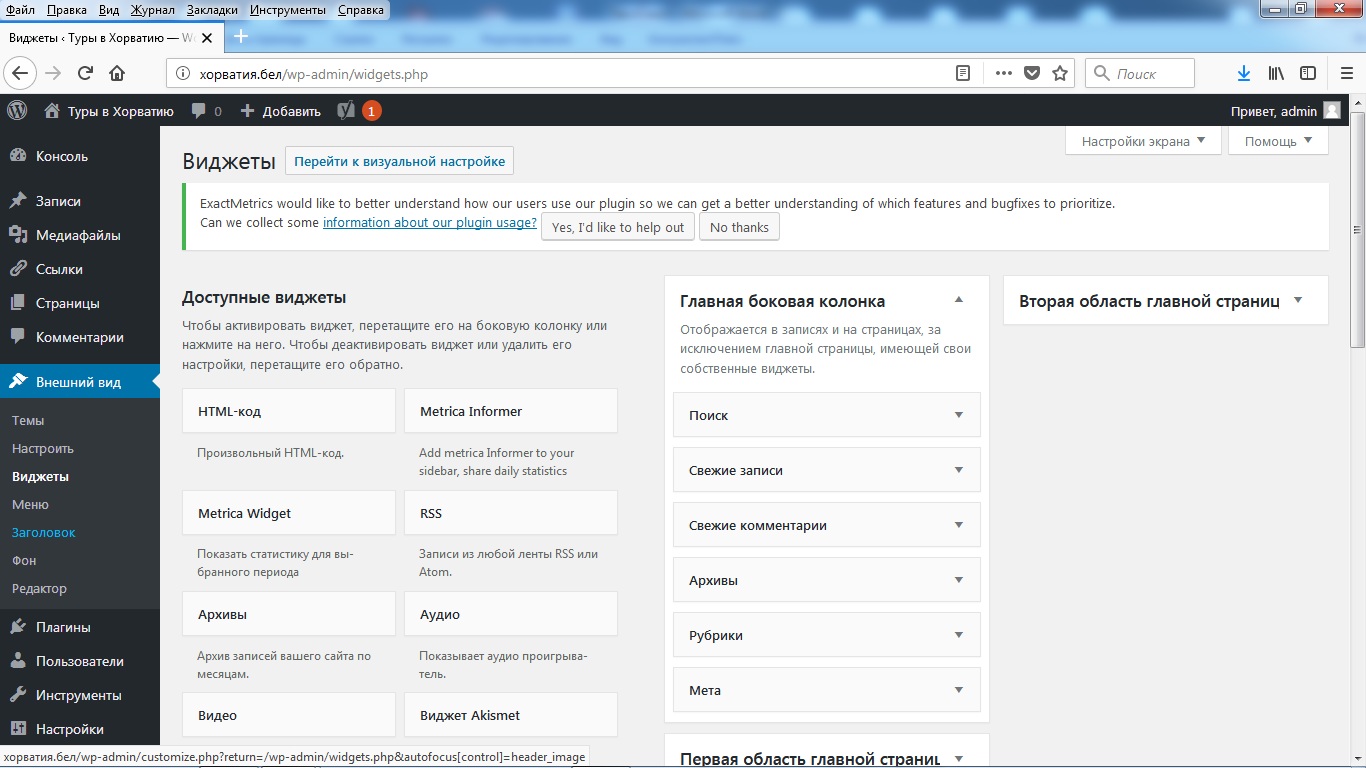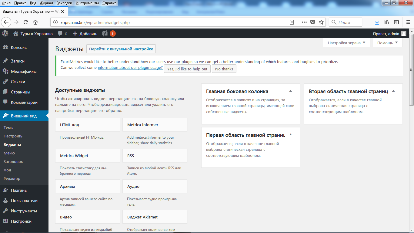 Зайдите в меню «Внешний вид / Виджеты».