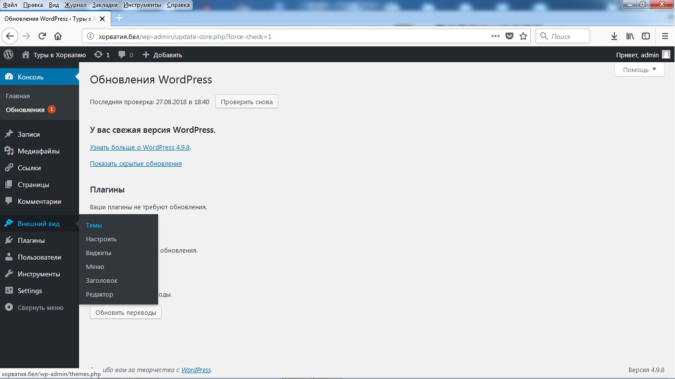 После этого проверьте, обновлен ли ваш WordPress.