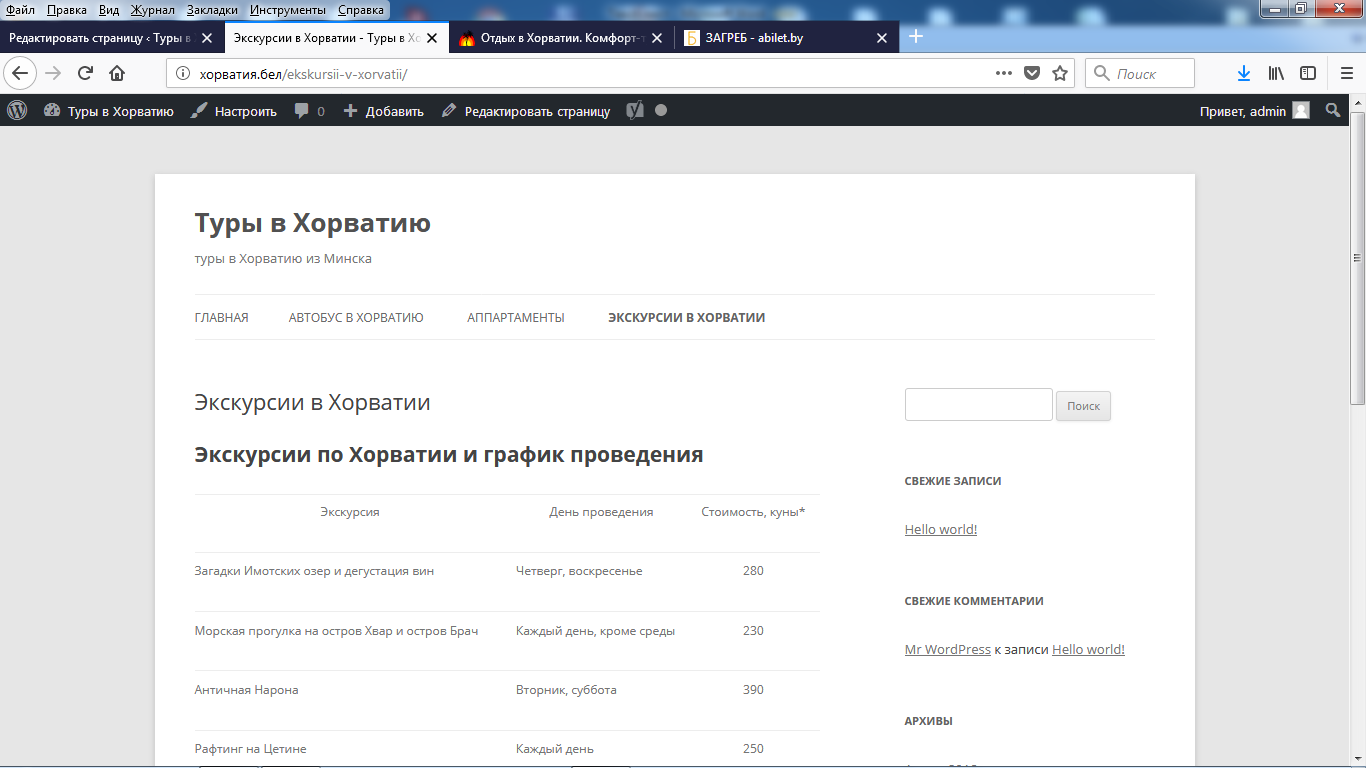 Следующая страничка будет называться «Автобус в Хорватию».
