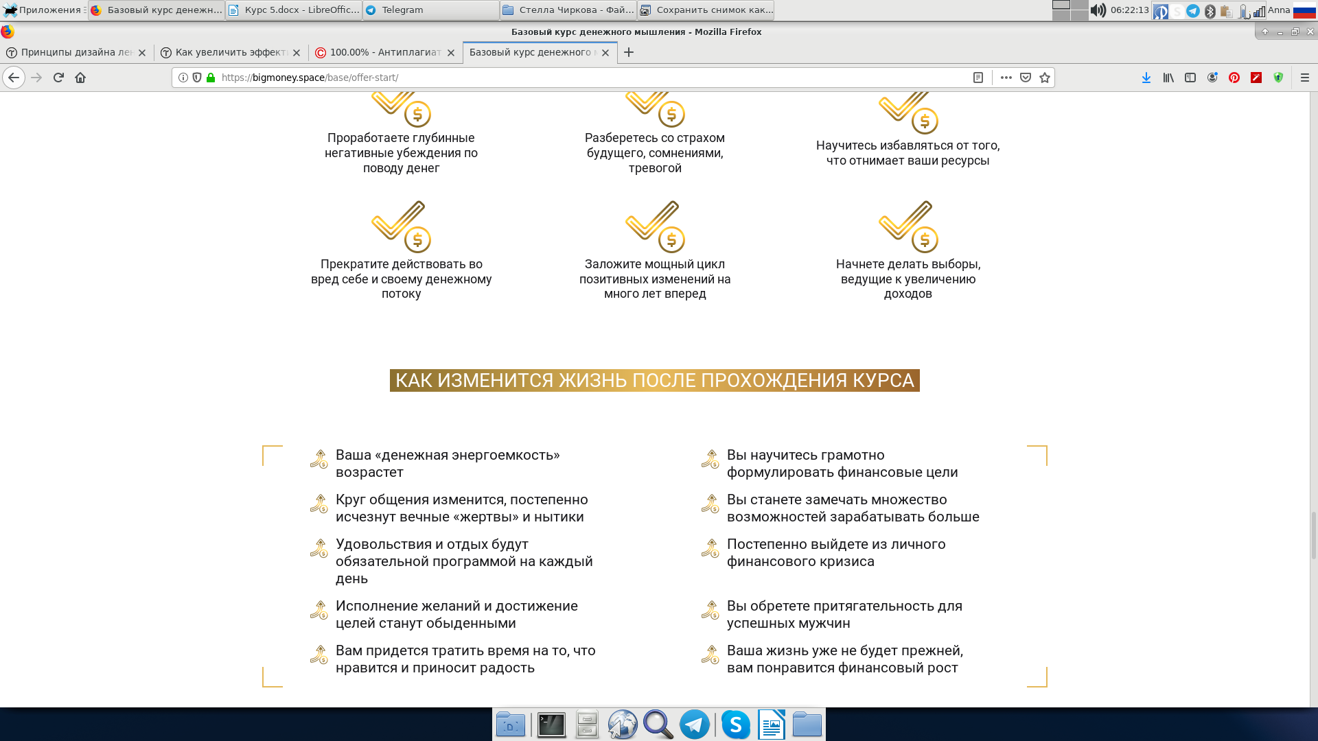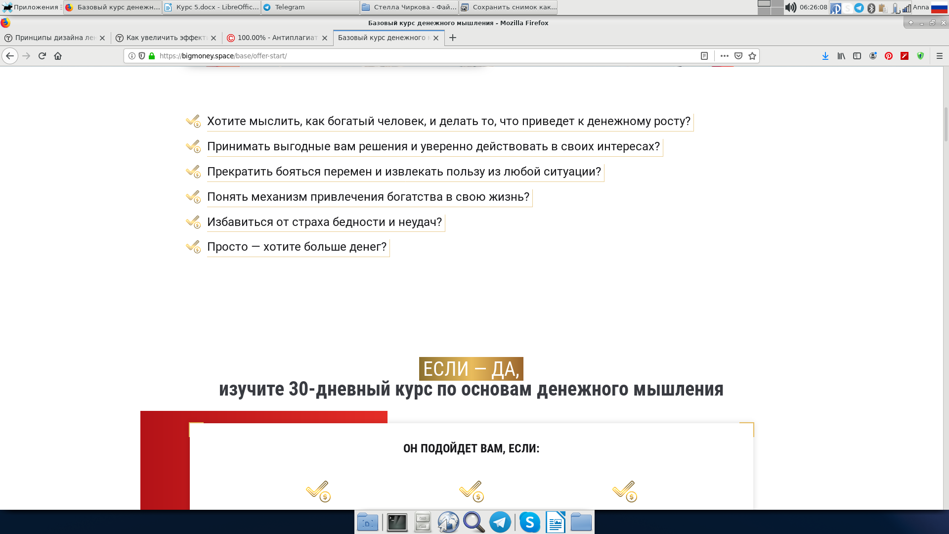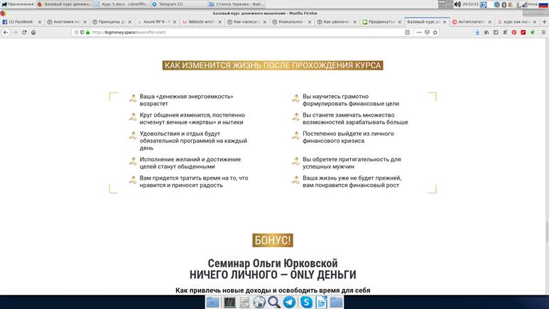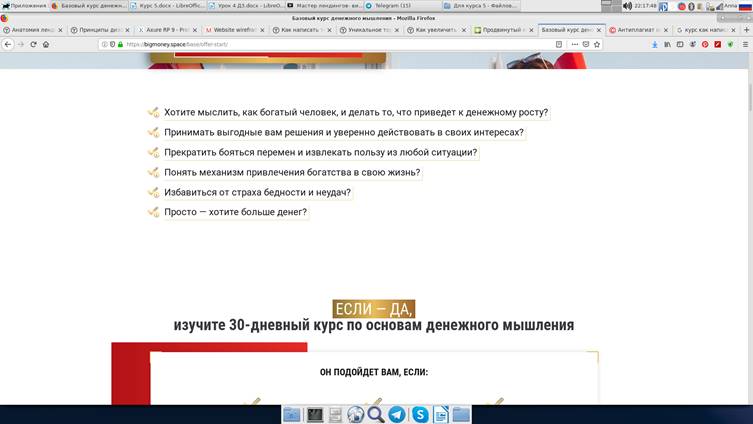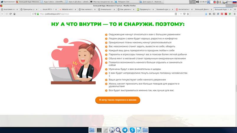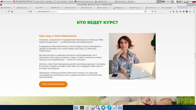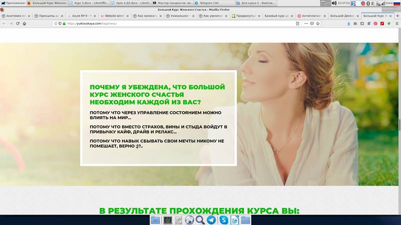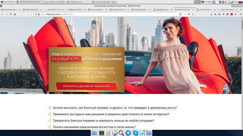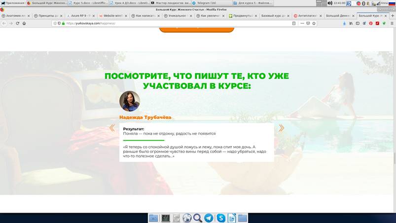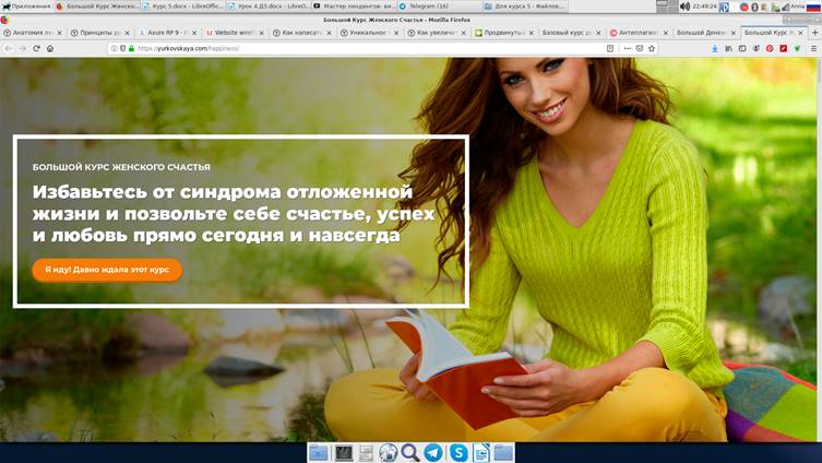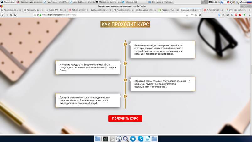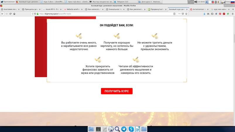 Landing page, или лендинг — это специальная страница в Интернете, которая подводит читателя к одному ключевому действию: подписке, покупке, заполнению заявки и т. д. В контексте данного курса мы будем говорить именно о продающих лендингах — страницах, с которых осуществляется продажа инфопродуктов.