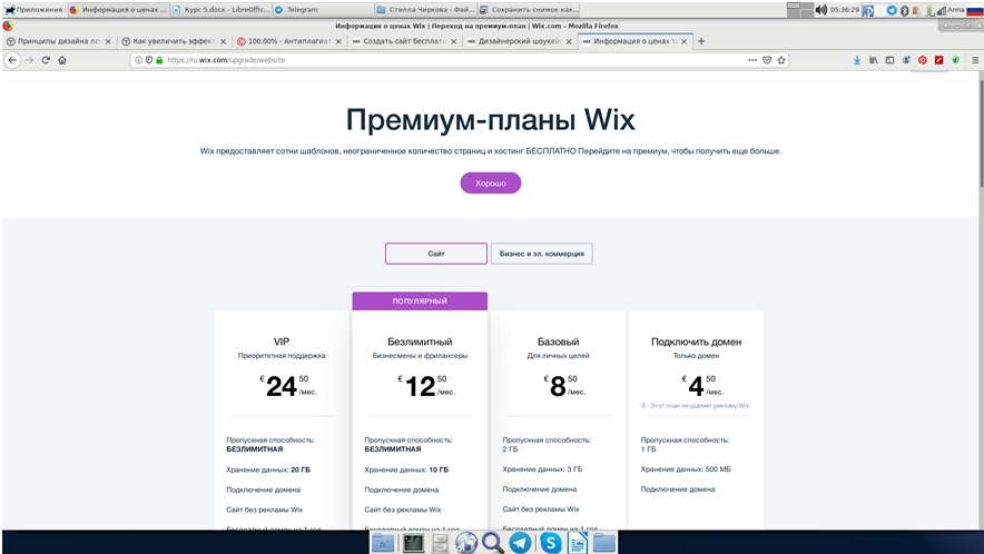 - Personal. Появляется возможность подключения персонального домена, а также можно использовать всю коллекцию блоков и другие функции сервиса.