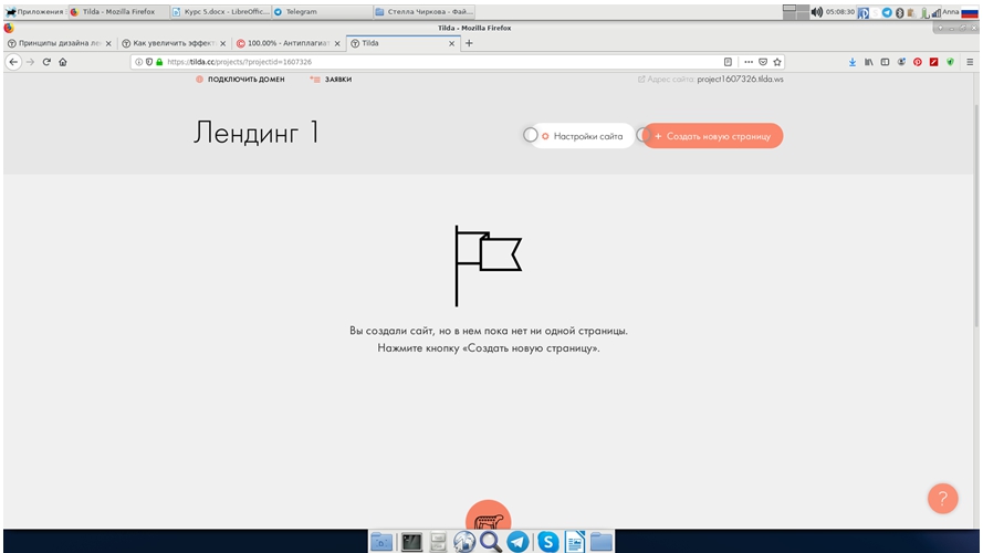 Шаг 4. Поздравляем, ваш сайт создан! Его адрес звучит не совсем приглядно: project1054528.tilda.ws — но это временно и необходимые настройки все исправят.