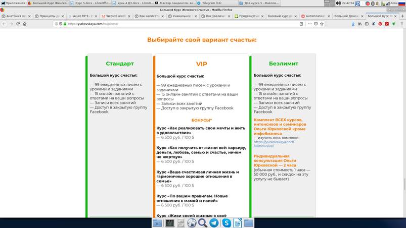 Иногда инфобизнесмену хочется поддаться соблазну и на одной странице предложить клиенту как можно больше своих продуктов. Ведь кажется, что так посетитель проникнется большим доверием: у автора так много разных курсов, наверное, он хороший эксперт.