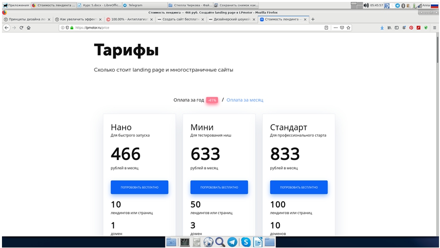 Преимущество оплаты сразу за год не только в более выгодных ценах на подписку, но и также в возможности отключения лейбла «made on Tilda», который автоматически появляется на всех сайтах, созданных на сервисе.