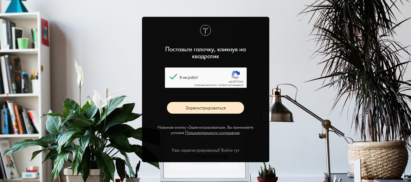 Система попросит поставить галочку в подтверждение, что вы не робот, чтобы продолжить регистрацию.
