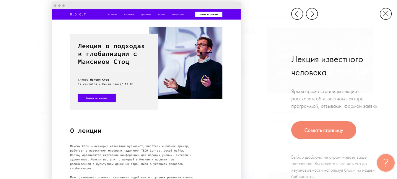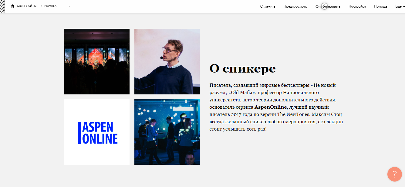Tilda Publishing — это конструктор сайтов, который помогает из огромной библиотеки готовых блоков собрать свое личное уютное пространство в сети. Сервис подходит для создания классических сайтов компаний, одностраничных лендингов продуктов и мероприятий, личных блогов и интернет-магазинов. В первую очередь, площадка будет интересна специалистам из сферы медиа и людям бизнеса. К примеру, здесь можно создать свое портфолио, вести журнал личных наблюдений или привлечь внимание к какому-то событию. Одно из главных и неоспоримых преимуществ Tilda Publishing — это бесплатное создание сайта и использование базового набора функций. Уже стоит того, чтобы хотя бы попробовать. Ведь что вы теряете?