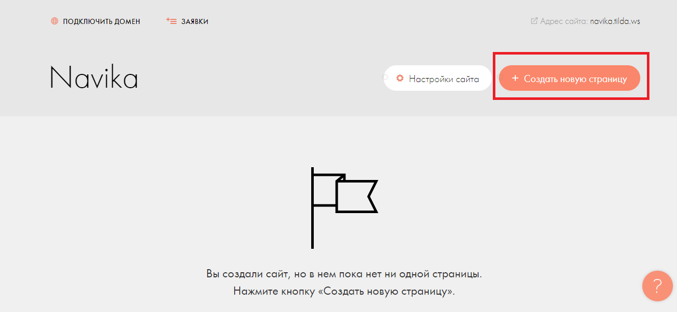 Шаг 6. Теперь нужно наполнить сайт персональной информацией. Для этого необходимо на главной странице проекта нажать на кнопку «Создать новую страницу».