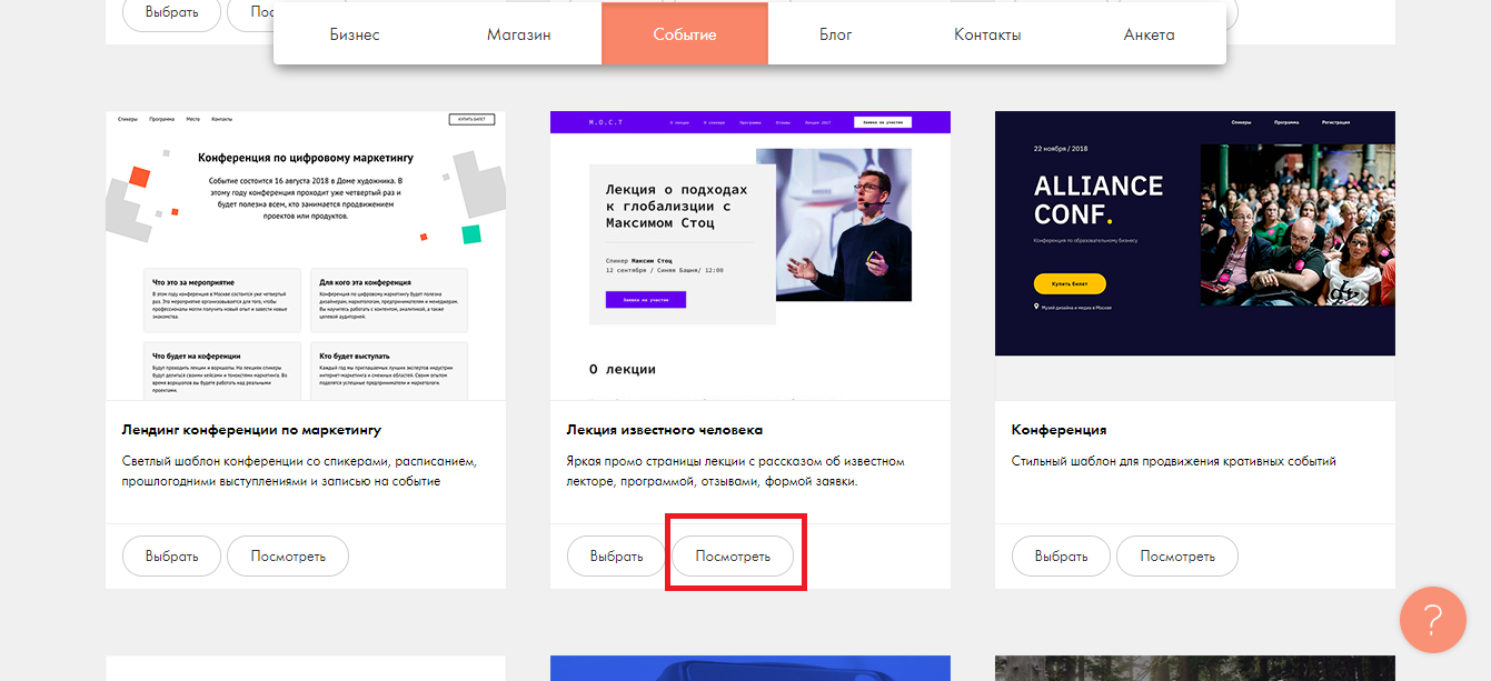 Если вас заинтересовал какой-то шаблон, нажмите на кнопку «Посмотреть».