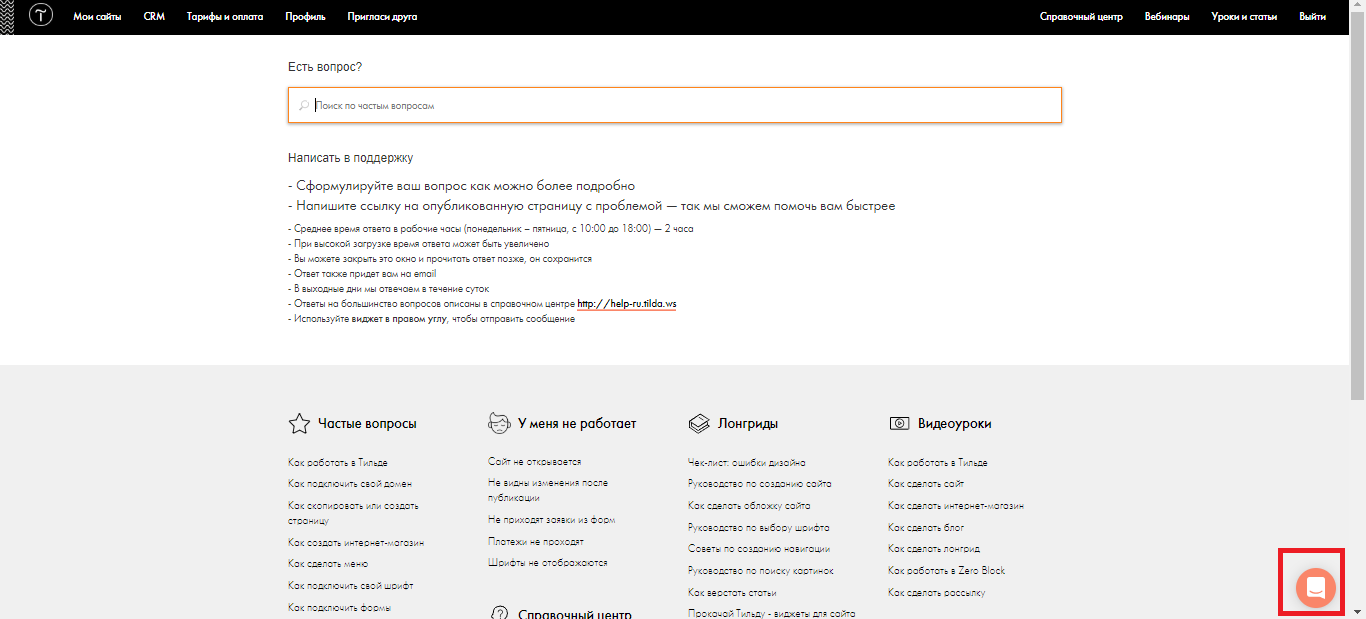 Если же у вас возник вопрос, ответ на который не находится в справочниках, свяжитесь со службой поддержки. Для этого сначала нажмите на «знак вопроса» в нижнем правом углу страницы.