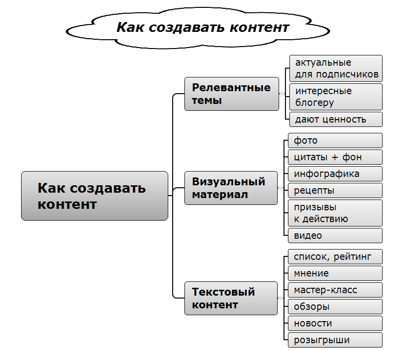 Если говорить о типах визуального контента, то их множество. Выбирайте наиболее подходящие лично вам и вашим подписчикам.