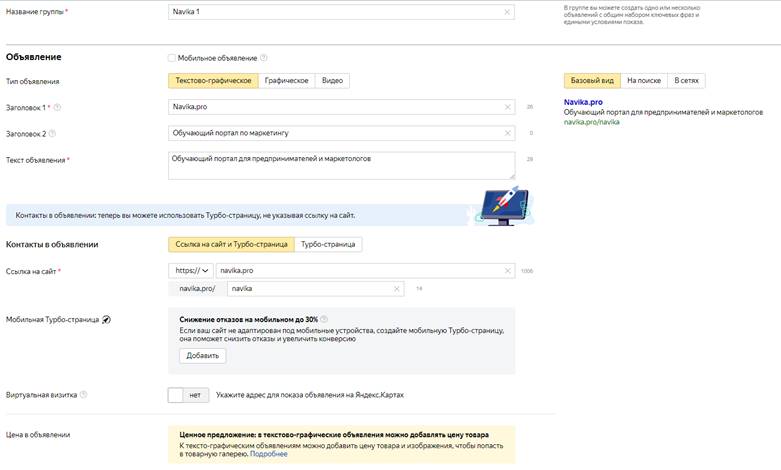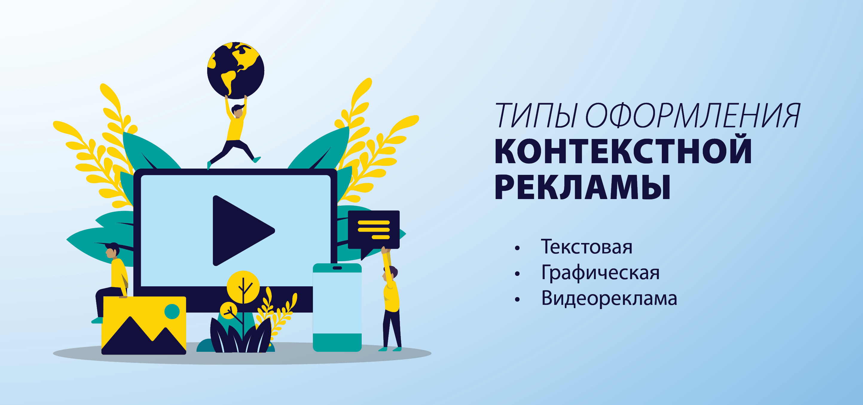 Название «текстовая реклама» говорит само за себя, в объявлении содержится только текст. В графической добавляются изображение или анимированный баннер. В видеорекламе — короткий ролик.