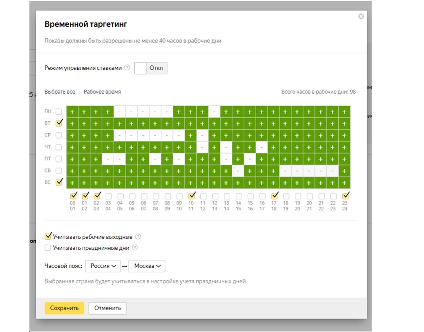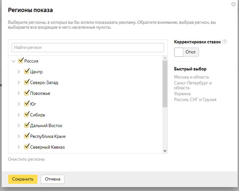 Определите страны и регионы, в которых вы будете показывать свое объявление, а также вы можете настроить даты и время показа.