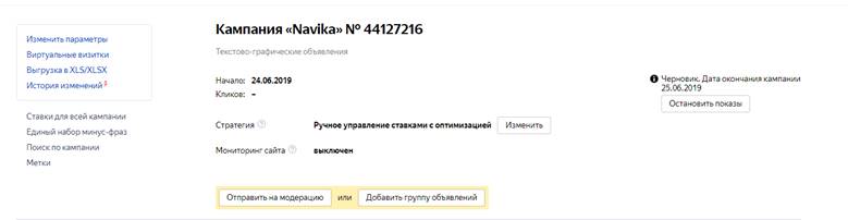 После прохождения модерации вы можете пополнить счет «Яндекс.Директа» и запустить рекламную кампанию.