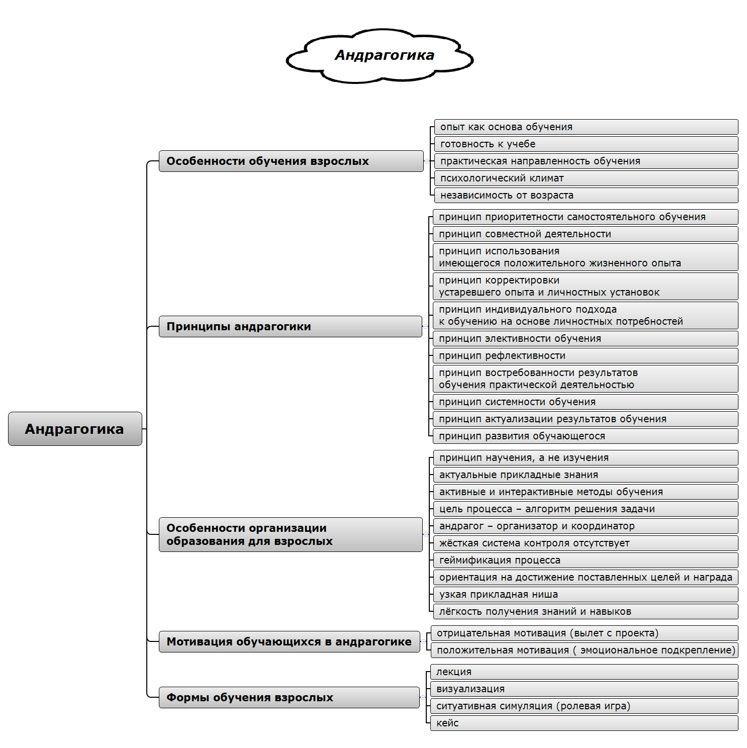 Исходя из этого, андрагогика — наука о теории и практике обучения взрослых людей в течение всей жизни.