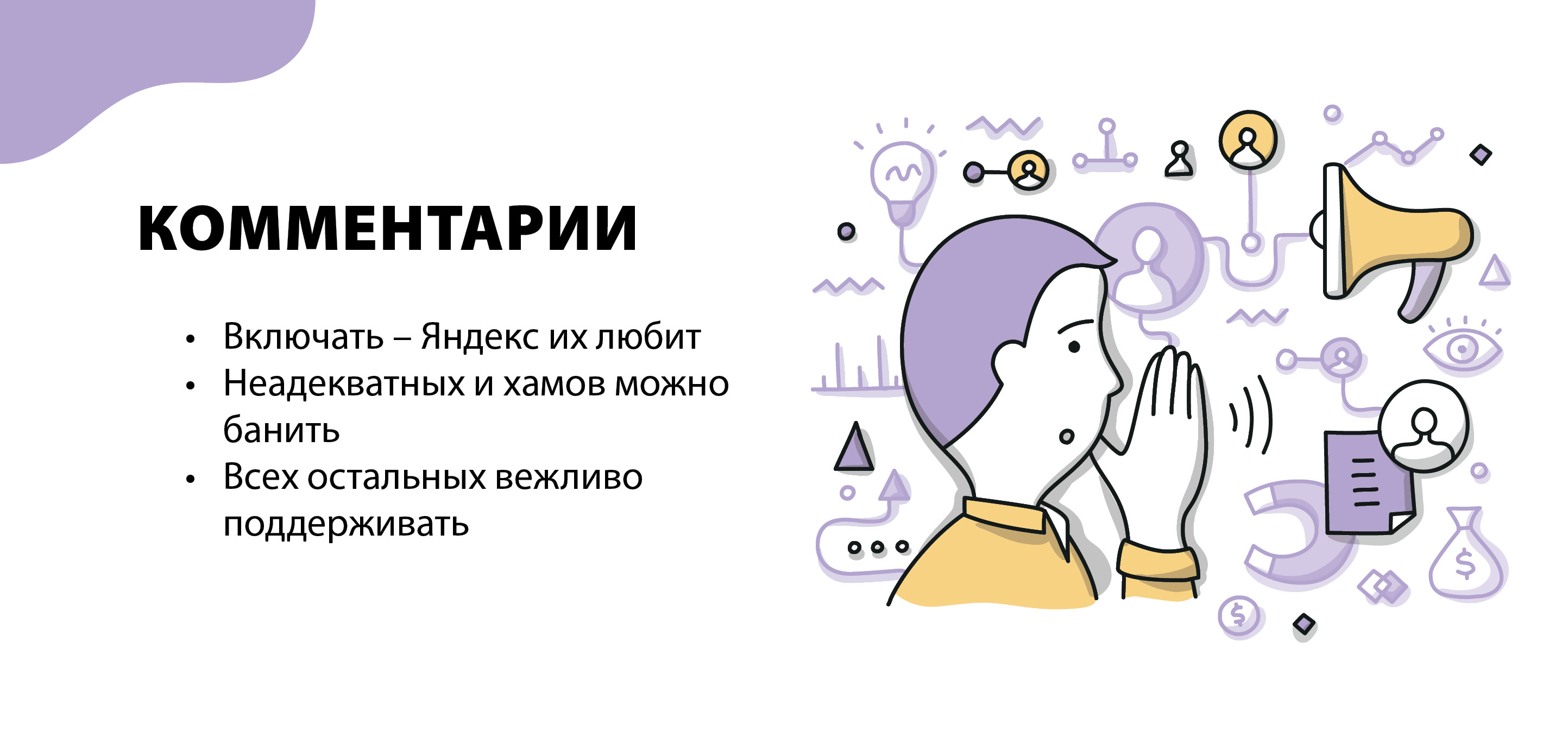 А вот людей, спокойно высказывающих свое мнение, пусть и отличное от вашего, стоит поощрять. Поблагодарите их за уделенное время, отметьте, как приятно дискутировать с культурным оппонентом. Ваши ответы «Яндекс» тоже посчитает, как дополнительные комментарии, тем самым вы повысите показатели вашей публикации.