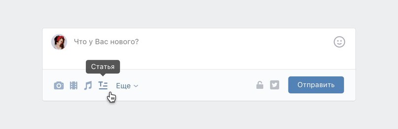 Чтобы воспользоваться редактором, выберите в окне «Что у вас нового?» режим «Статья».