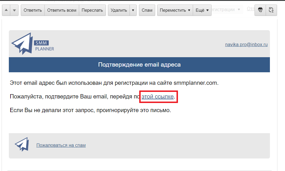 Шаг 2. Для начала работы необходимо перейти в свою электронную почту и подтвердить адрес.