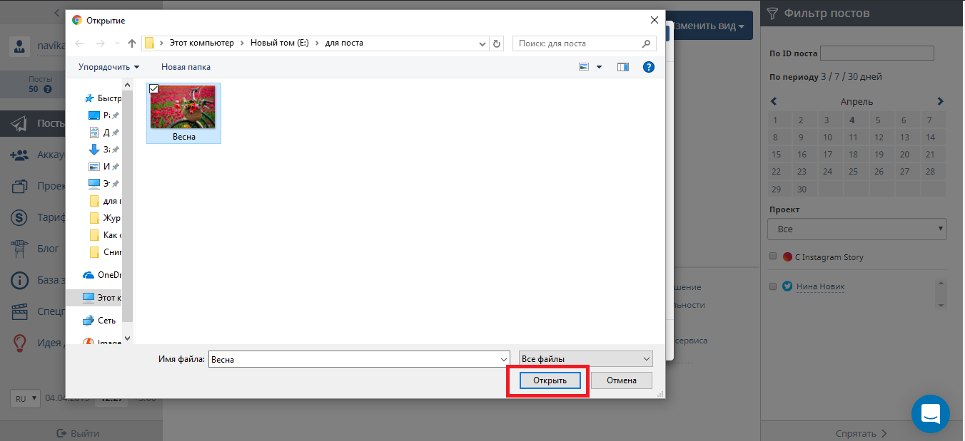 Выбираем на компьютере нужный файл и нажимаем на кнопку «Открыть».