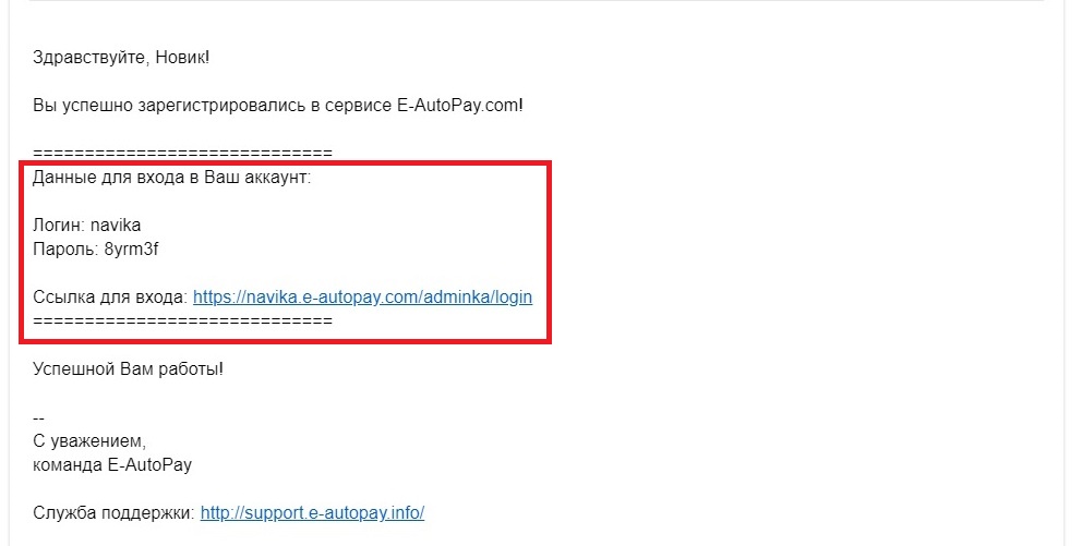 Шаг 4. Дальше проверяем указанный при регистрации e-mail — на него должно прийти письмо с логином, паролем и ссылкой для входа в аккаунт.