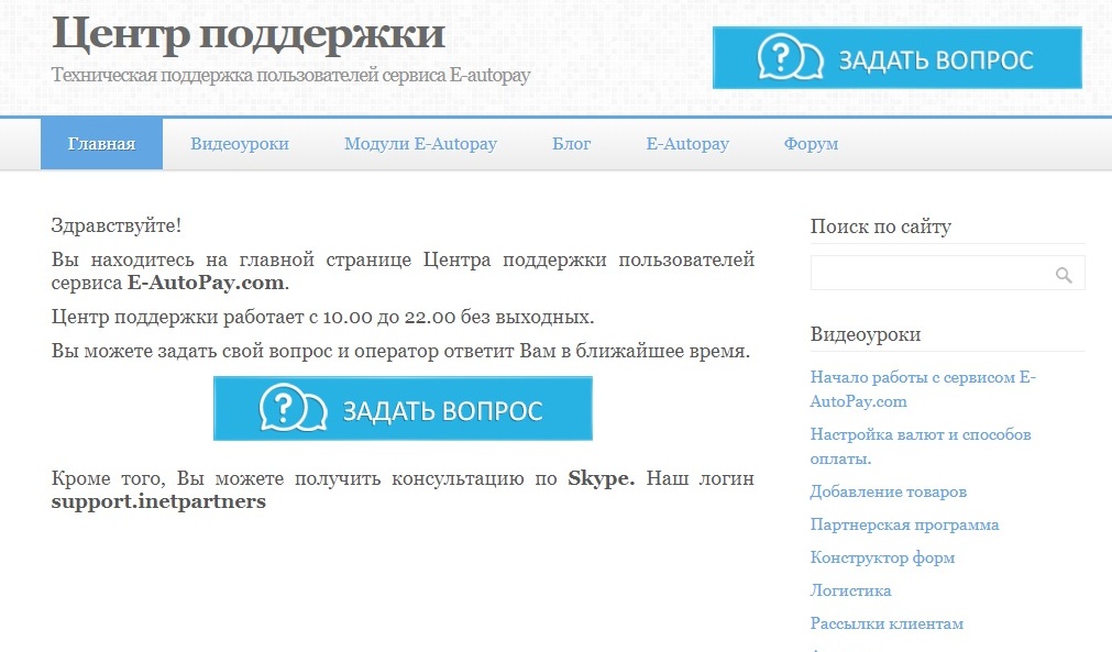 Если у вас не получается зарегистрироваться в системе E-AutoPay или возникли какие-то трудности, то получить помощь можно напрямую от специалиста центра поддержки на сайте www.support.e-autopay.info. Нажмите на кнопку «Задать вопрос».
