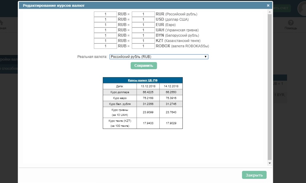 Шаг 12. После выбора валюты необходимо отредактировать актуальный курс валют. Вы можете использовать официальные курсы или задать свои соотношения. После редактирования нажимаем на кнопку «Сохранить».