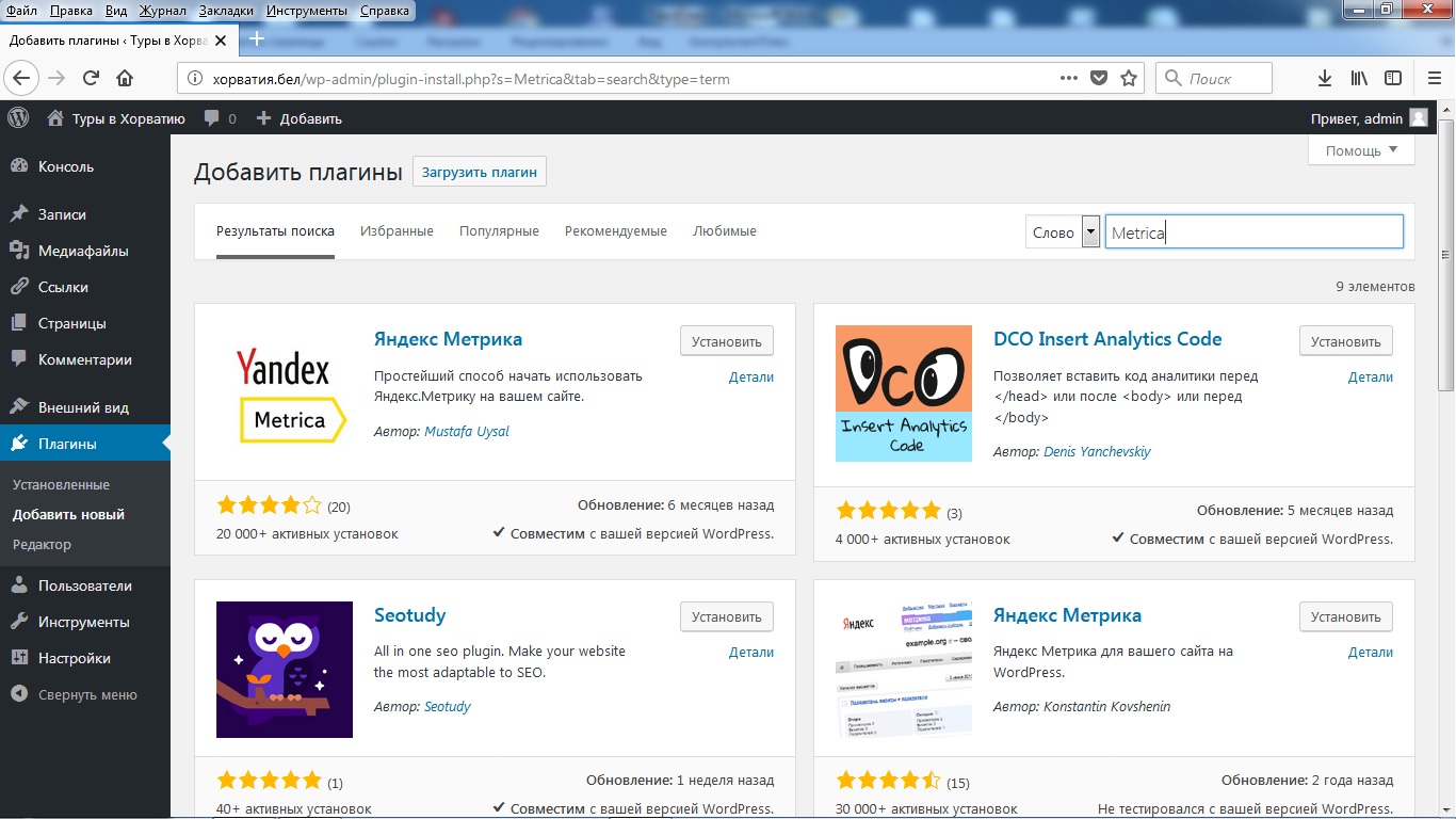 Проверьте, что плагин «Яндекс.Метрика» активирован.