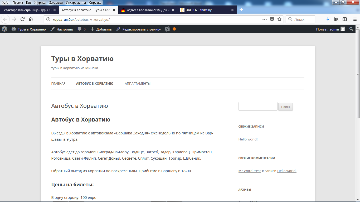 Следующая страничка будет называться «Автобус в Хорватию».