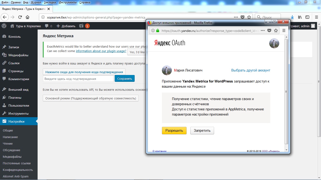 Нажмите кнопку «Разрешить» и скопируйте полученный код в окошко с надписью «Код доступа».