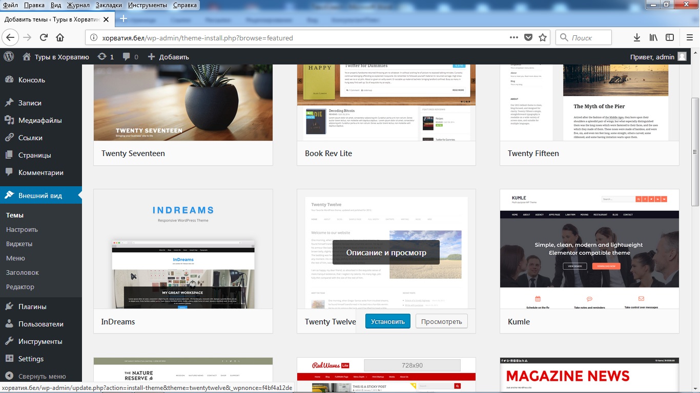 Найдите в списке тем Twenty Twelve. Установите ее.