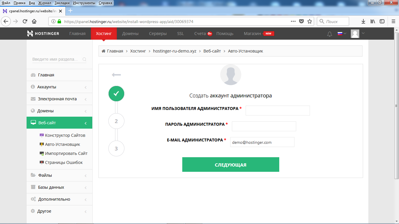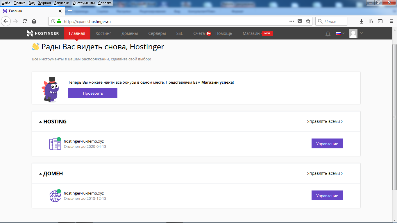 Итак, вы выбрали домен и оплатили хостинг. Пусть будет hostinger.ru.