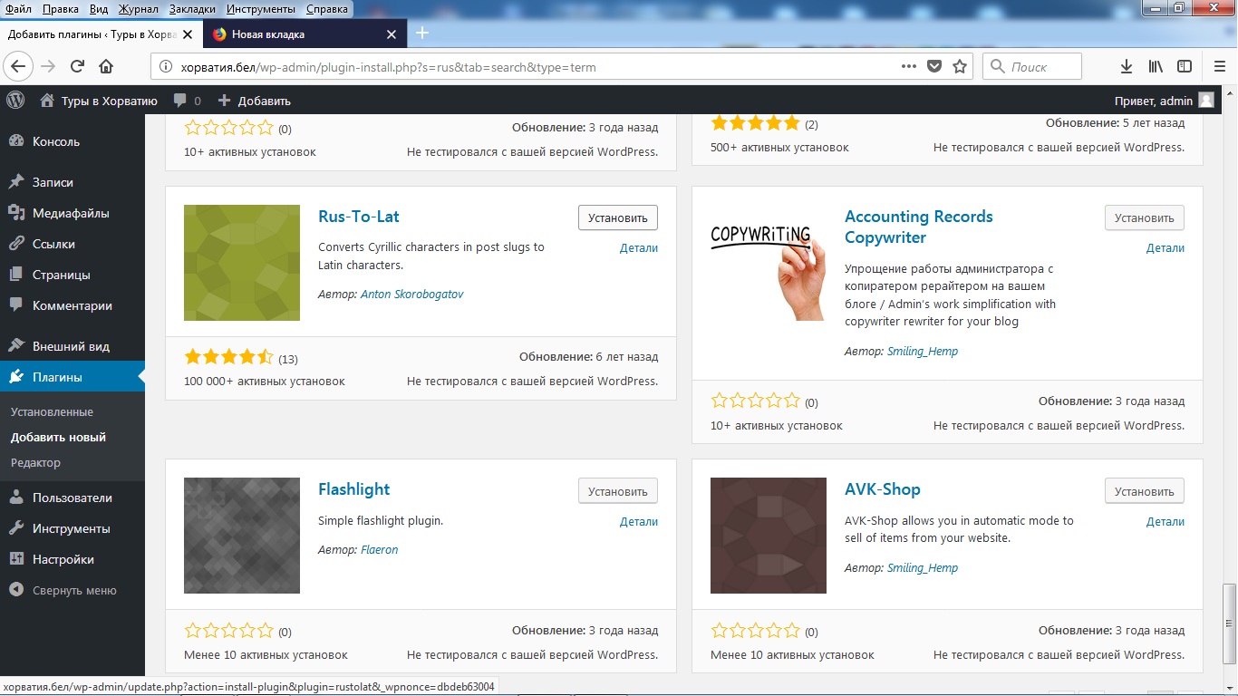 В процессе дальнейшей работы с сайтом эту операцию нужно повторять по мере надобности, обновлять и саму версию WordPress, и установленные плагины.