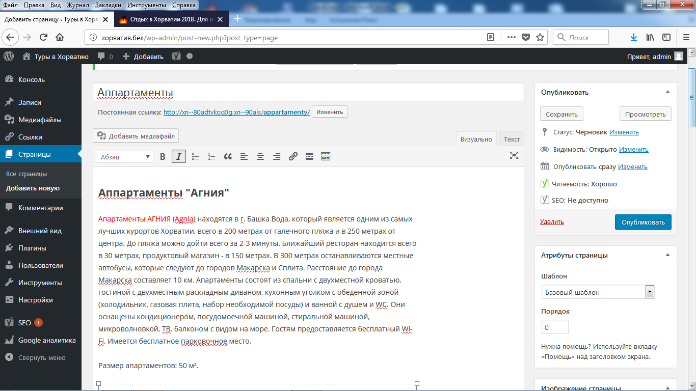 Для примера используется сайт хорватия.бел.