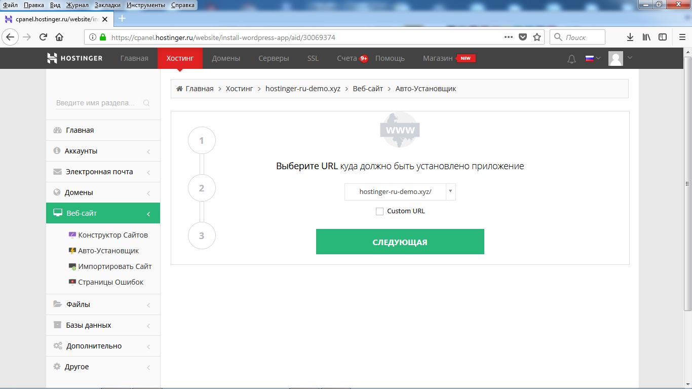 Дальше установите приложение WordPress на хостинг.