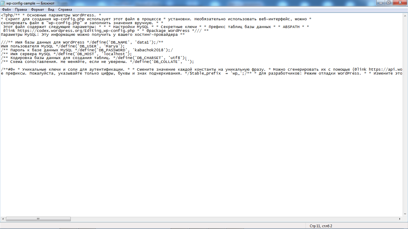 wp-config-sample.php — нужно wp-config.php.