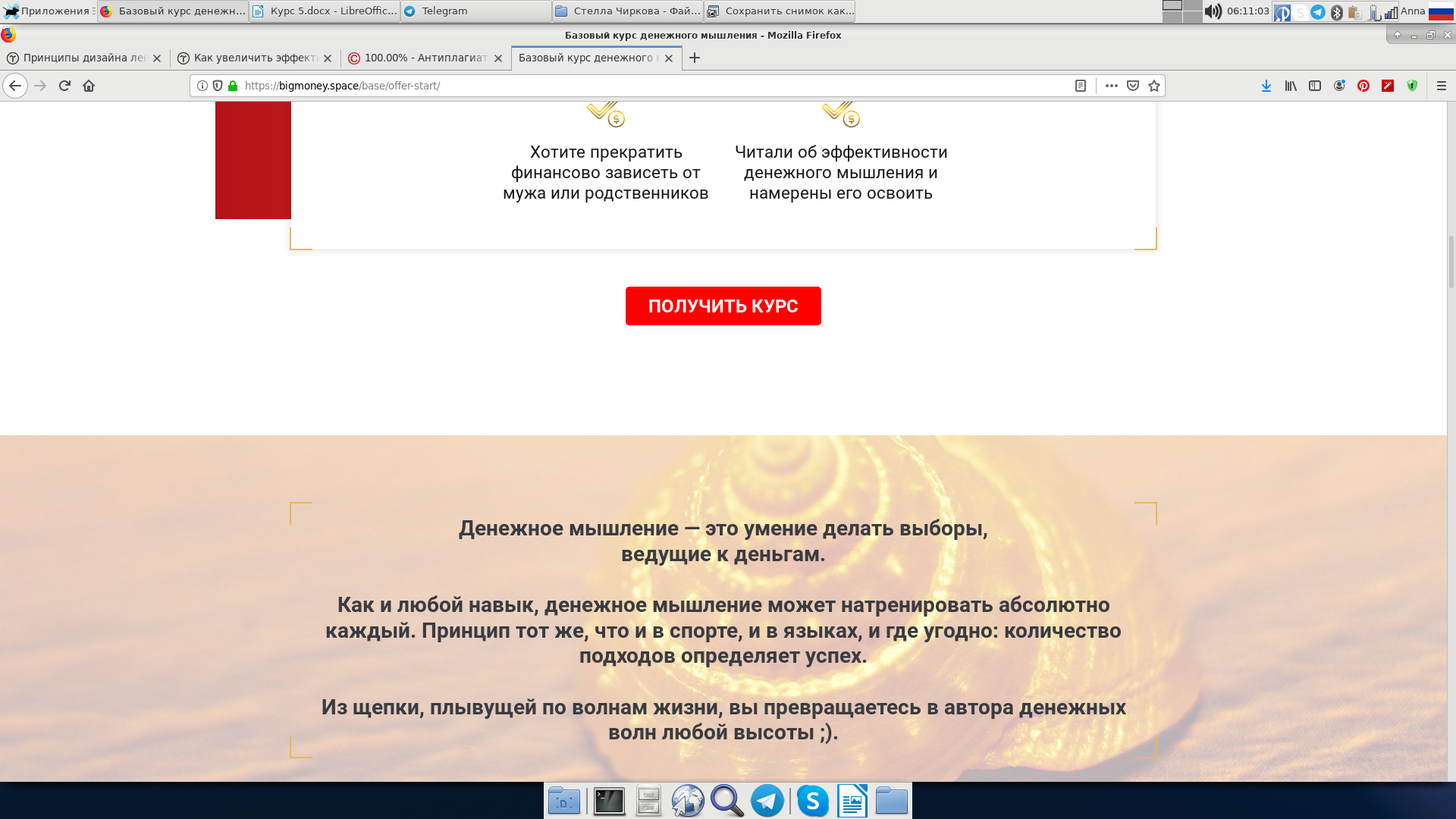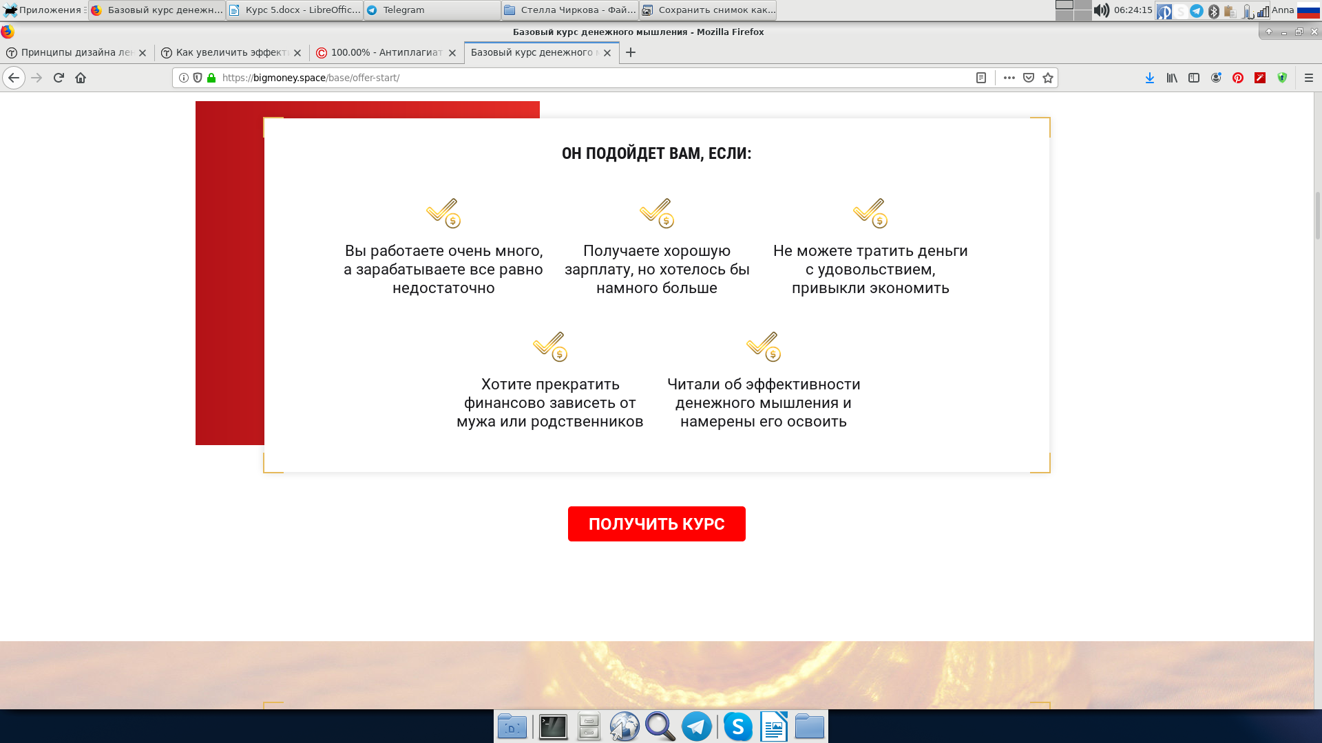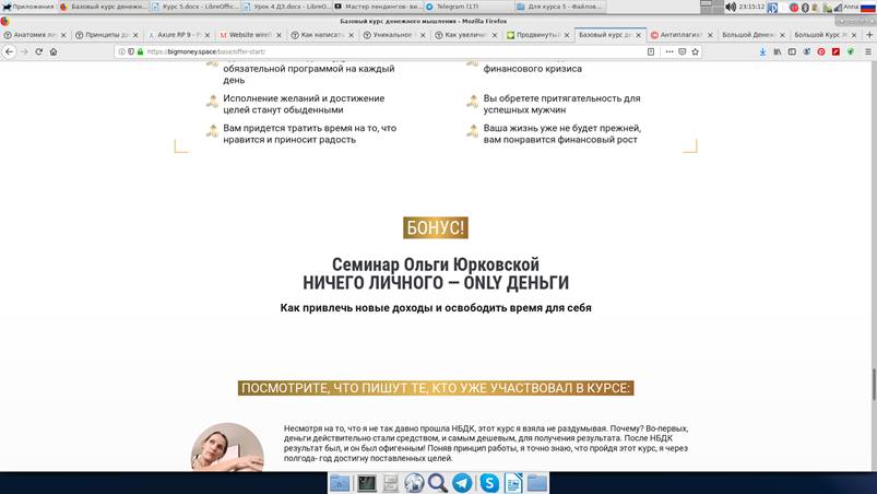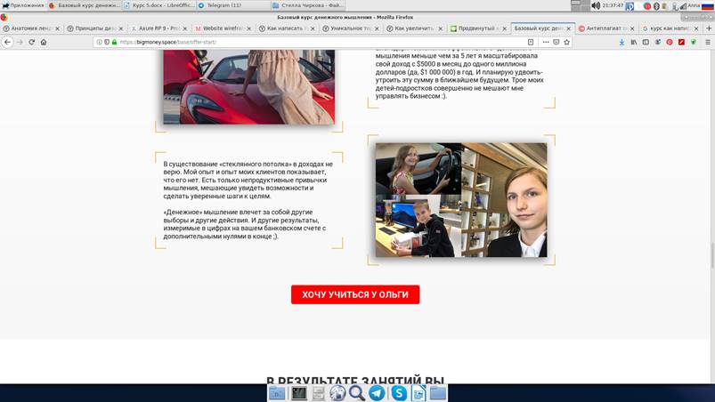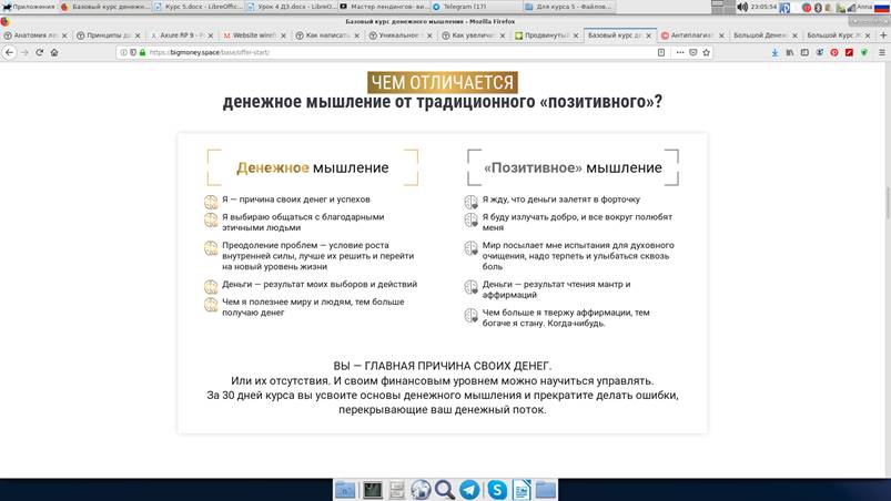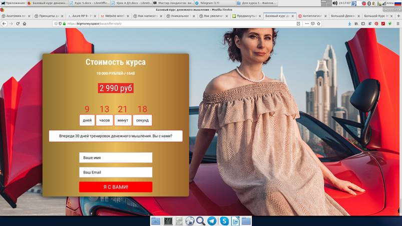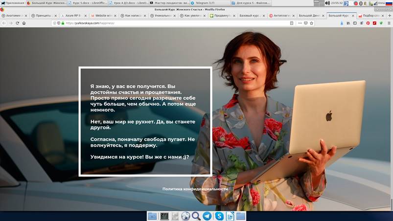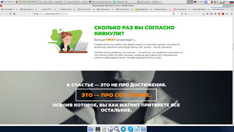 Landing page, или лендинг — это специальная страница в Интернете, которая подводит читателя к одному ключевому действию: подписке, покупке, заполнению заявки и т. д. В контексте данного курса мы будем говорить именно о продающих лендингах — страницах, с которых осуществляется продажа инфопродуктов.