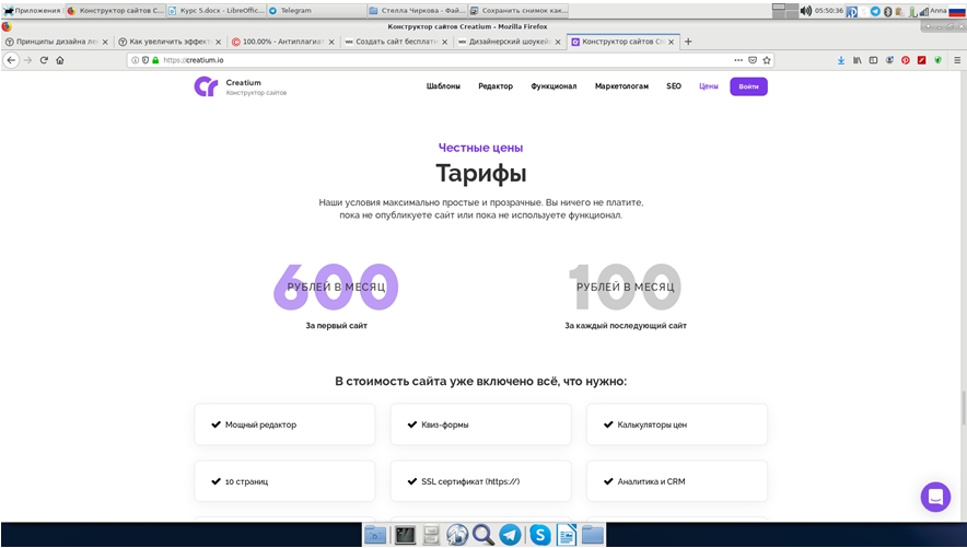 Создание сайта и использование ключевых блоков на тарифе Free не стоит ни копейки. Правда, здесь есть свои неудобства, как ограниченность функционала, так и невозможность подключения уникального домена. Поэтому если ключевых блоков вам недостаточно или важен персональный домен, можно выбрать один из двух тарифов: