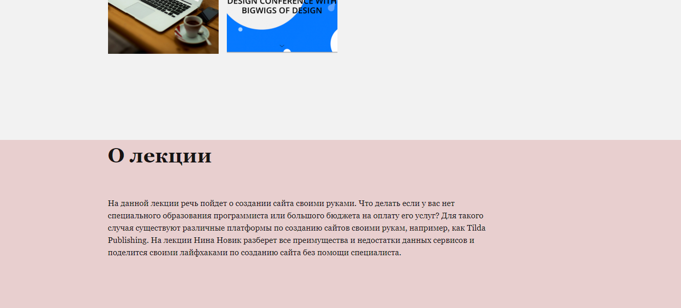 Так как наша лекция состоится впервые, блок «Как прошла встреча в 2017» лучше удалить. Для этого нужно нажать на значок мусорного ведра в правом верхнем углу.