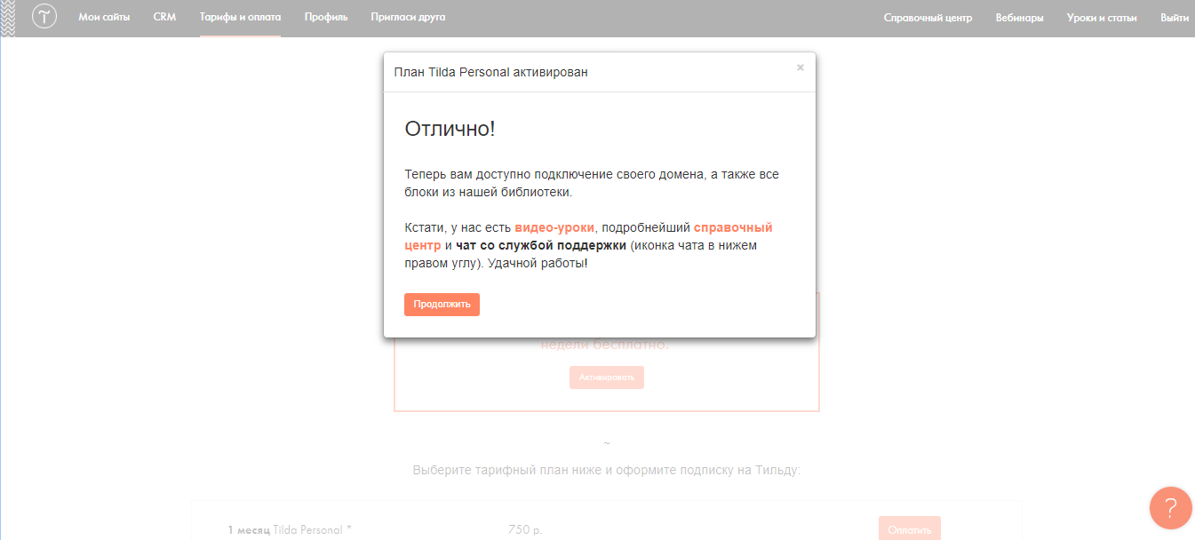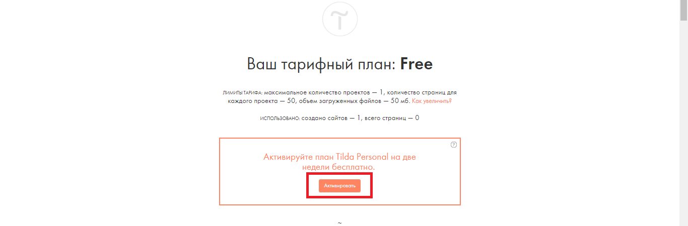 На последующей странице нажимаем на кнопку «Активировать» и получаем бесплатно тариф Personal на 2 недели.