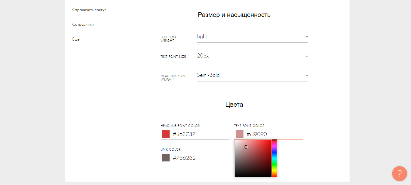 Внизу страницы можно выбрать размер шрифта и его цвет.
