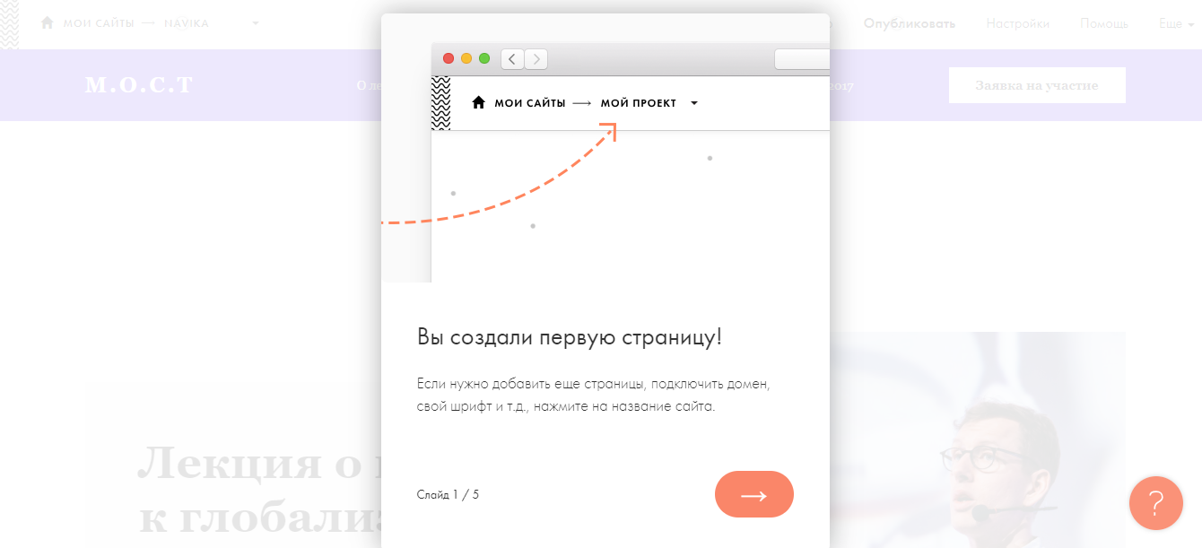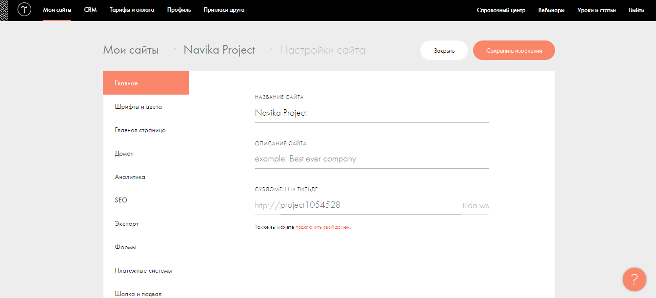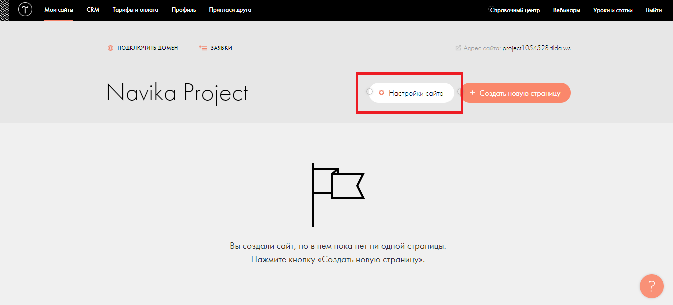 Шаг 4. Поздравляем, ваш сайт создан! Его адрес звучит не совсем приглядно: project1054528.tilda.ws — но это временно и необходимые настройки все исправят.